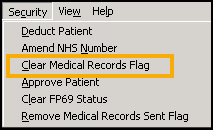 , select Security - Clear Medical Records Flag: