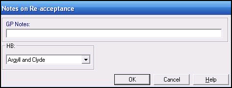 For practices in Scotland, if the deduction is a Removal to new TP/HB/CSA you see the Notes on Re-acceptance screen when you re-accept the patient: