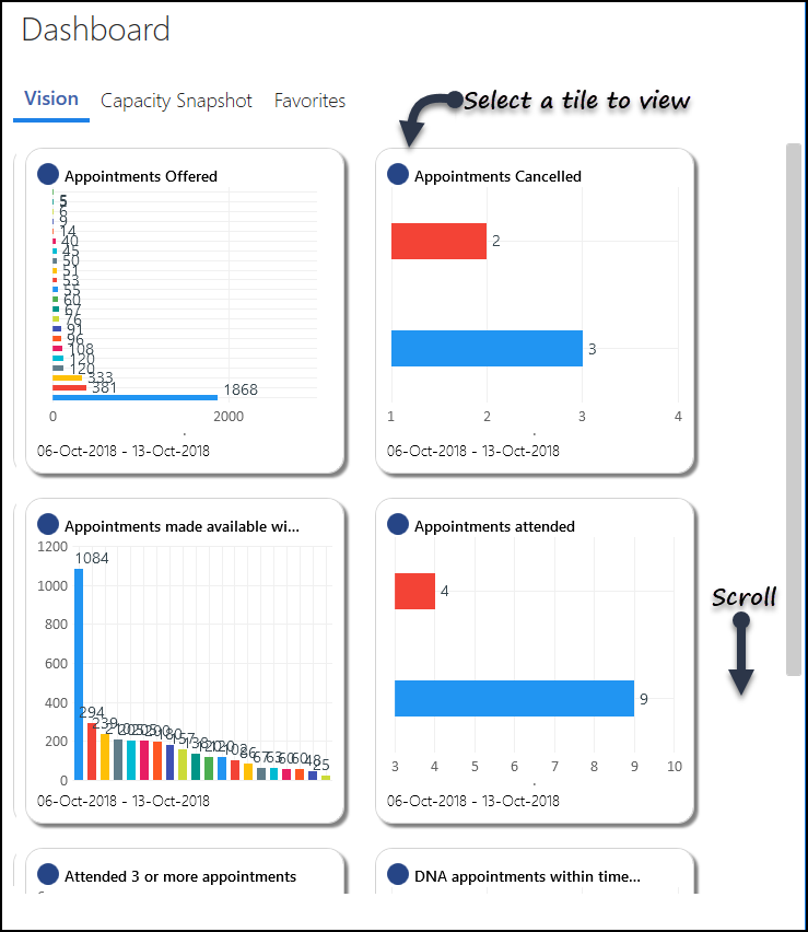 The Vision tab is the default view on the Dashboard when you sign into the Appointments Reporting app.