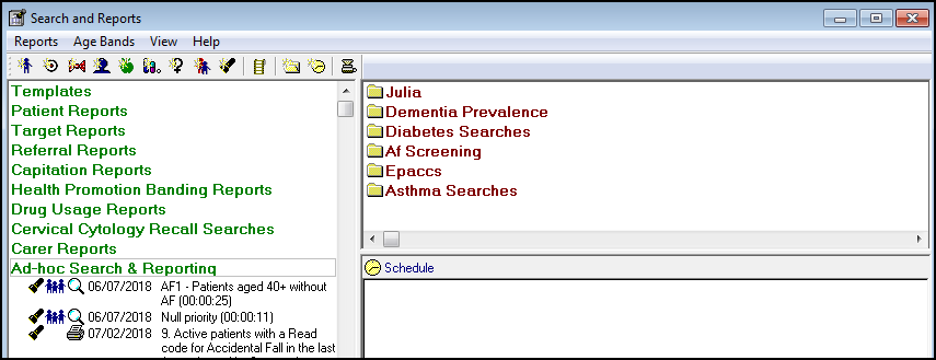 Reports or searches can be batched together into a group / folder for future access. You can then schedule to run this batch at a later time.