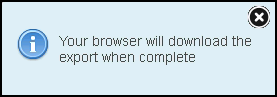 - The export runs, and the 'Your browser will download the export when complete' message displays in the bottom right hand corner of the screen.