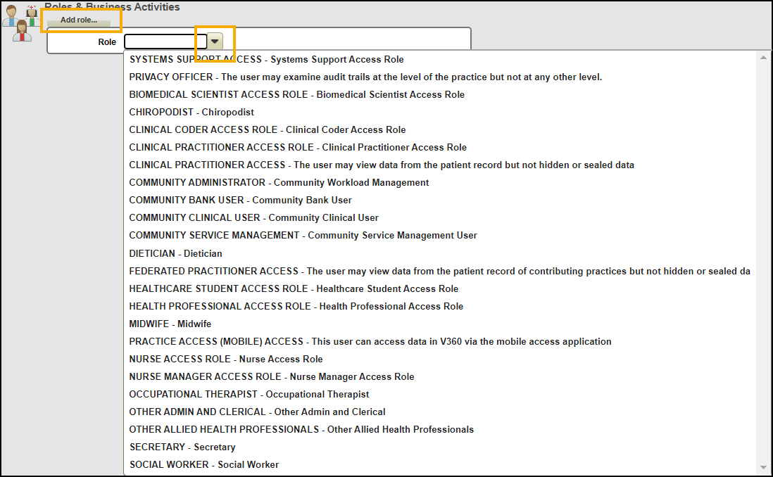 Setting User Roles defines the access level and service type of a user, for example, the Systems Support Access role gives administration rights to be able to reset passwords, unlock and manage user accounts.