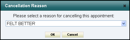 Note - The cancellation reason you select here applies to all of the selected appointments. These are defined in Vision 3.