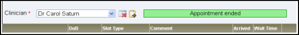 Calling the next patient into the consultation automatically marks the previous patient as seen and records the consultation end time.
