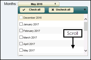 Months - Tick the months you require, or select Check all to select the last 18 months: