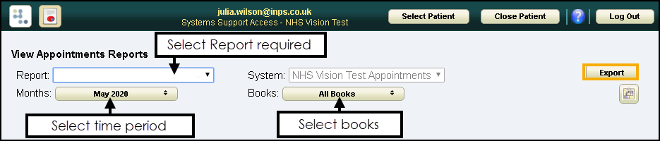 Books - The report defaults to All Books, if required choose the drop down to refine the selection.