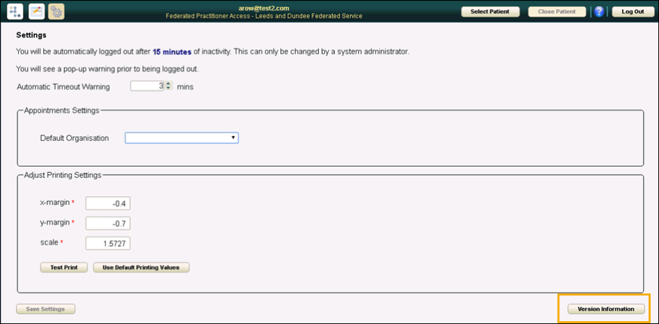 3. Select Version Information and the list of all the Vision360 products for your organisation and their version numbers displays.