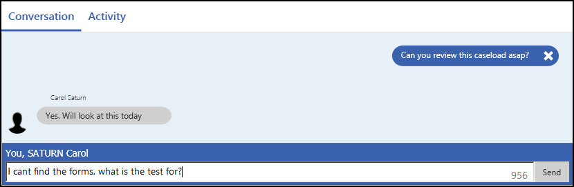 and any existing messages display. - Enter your message, up to 1000 characters: