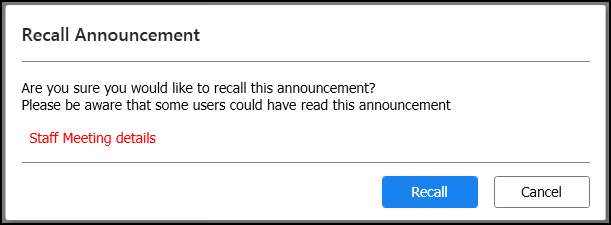 Select Recall and the announcement is removed from the system.