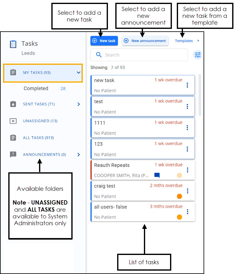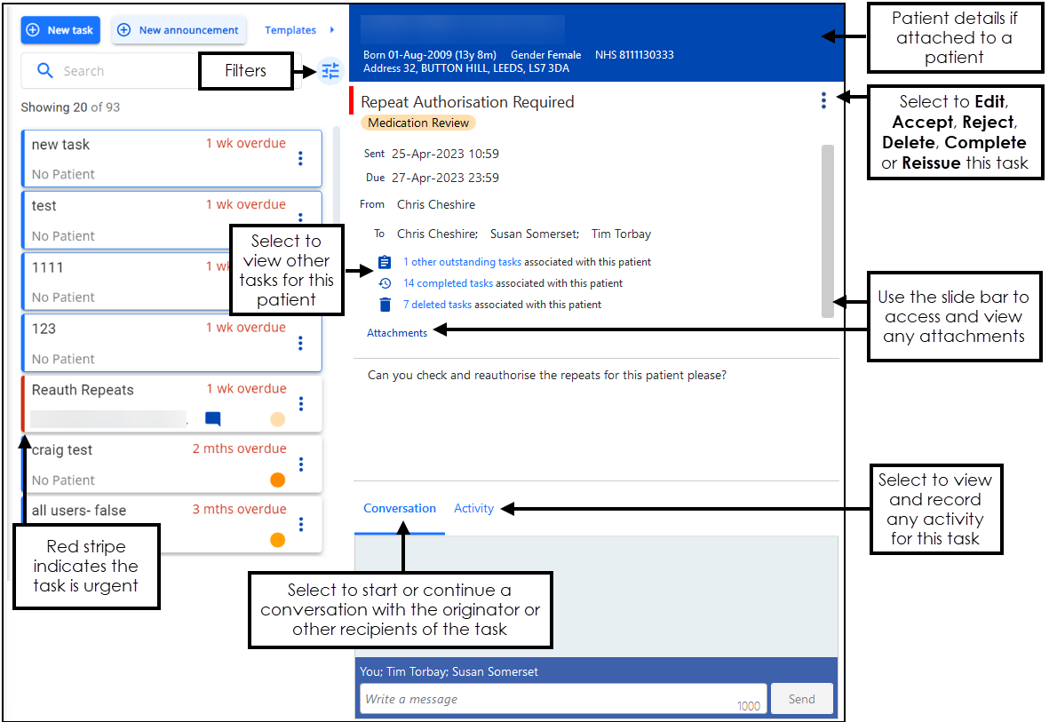 Note - For clinical safety reasons, if a patient is attached to a task, you cannot change or remove the patient. If a different patient is required, you need to delete the task and add a new task attached to the correct patient.