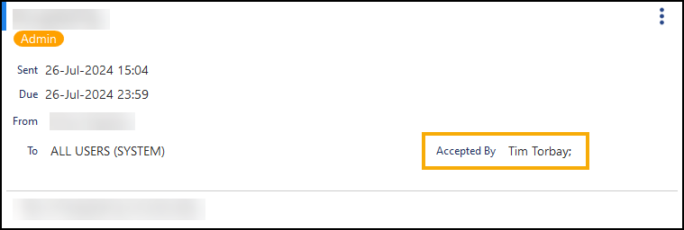 • Accepting a Task - If a task is allocated to a group you are a member of, you can select to Accept it. This indicates to all other recipients and the originator that you are planning on actioning it. To mark a task as accepted: