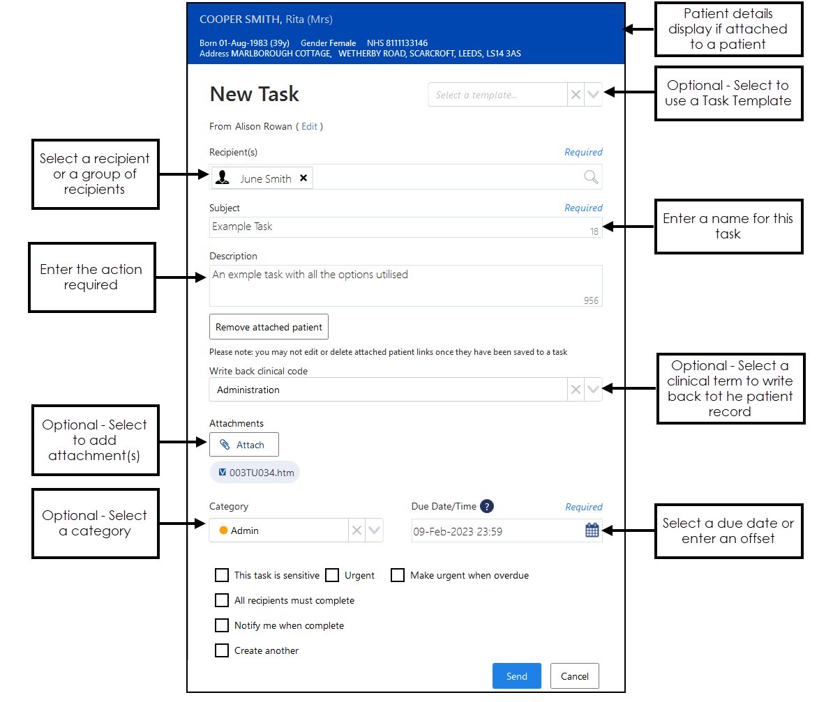 Category (optional) - Select from the pre-defined list, this allows the recipient to filter tasks allocated to them.