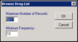 - Minimum Frequency - This is the number of times an entry has been used. For example, if you enter 10, this shows all the items that have been used in patient records at least ten times. Entries used nine times or below are excluded (the lowest permitted number is one).