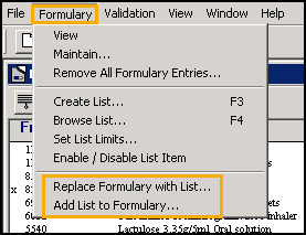 - Add List to Formulary - This compares the list with the current formulary and adds in any new items.