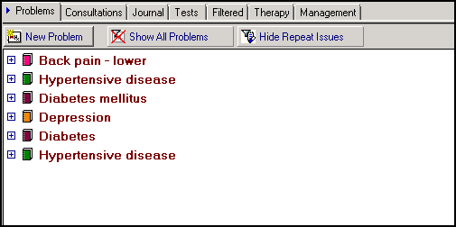 If configured, your Problems tab displays in Consultation Manager: