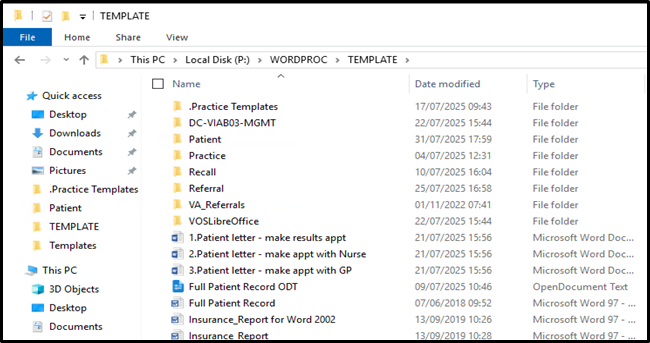 1. From File Explorer, locate the Microsoft Word template from P:\WORDPROC\TEMPLATE.
