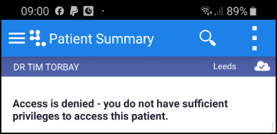 Some patients are marked as Sensitive at their practice, this restricts access to the patient’s record to specified staff only.