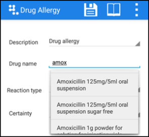 Vision Anywhere supports the recording of both drug and non-drug allergies.