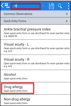 - Enter 'a' in the dynamic data entry bar, and tap to select the form.