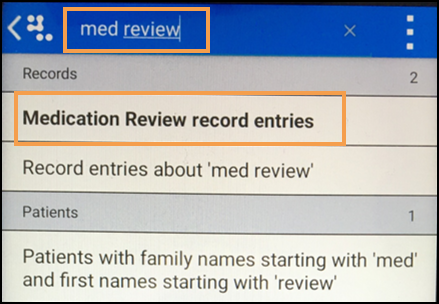 , enter 'med review' and select Medication Review record entries from the search results: