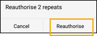 reauthorise all repeats. - Select Reauthorise to confirm reauthorisation: