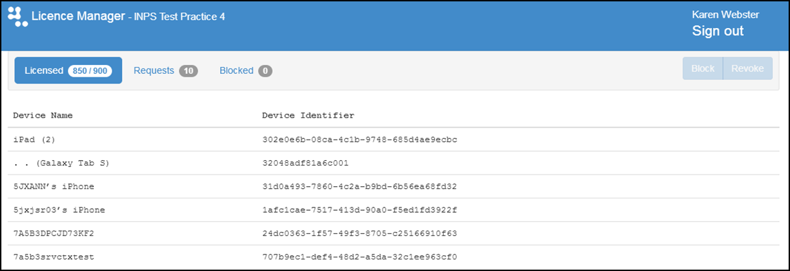 Note - You can block a device from the Licence Request tab to prevent it from requesting a licence again. This should be done if the device is not known to the practice.