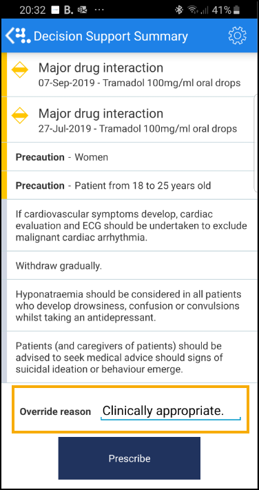 Prescribing Decision Support now offers access to interactions and contraindications at the point of prescribing. These are not currently available when in off line mode.