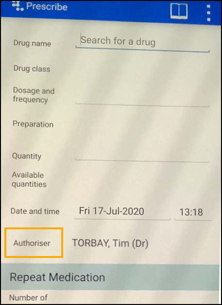 Medication - When recording a medication, the term Authoriser replaces Clinician: