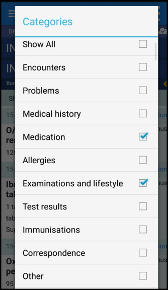 Many of the views such as Medical History, Lifestyle & Examinations and Correspondence now allow you to filter the data to return specific items such as procedures or blood pressure and smoking. You can also add date filters into all of the views.