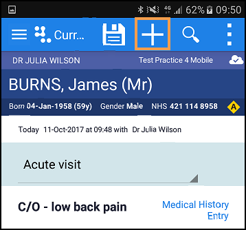Recording both clinical terms and prescribing can now be done quickly and easily from the dynamic data entry bar. This is activated by the Add button.
