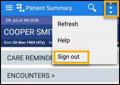 To log out of Vision Anywhere, select Options - Sign out: