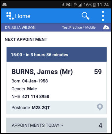 Note - If you want to download the patient to your device see Downloading Patients. Patients listed in Appointments Today automatically download to your device when you have an internet connection. - The Patient Summary screen displays.