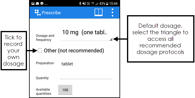 - Dosage - Update as required, these may automatically complete from the drug dictionary but you can overwrite the default if required.