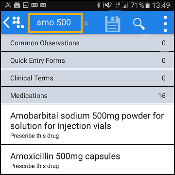 to activate the dynamic data entry bar: - Enter part of the drug name in the dynamic data entry bar, as you type, the smart list offers items that best match your entry. Three characters are needed to return medication data and combinations such as name and strength, for example, 'amo 500' refines the results: