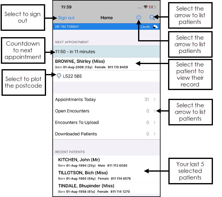 If you have just looked at a patient record without adding any data simply select Search to return to the Patient Select screen, here you can navigate back to the Home screen.