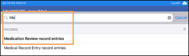 - From Search the patient record