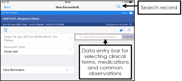 - Select a patient and open an encounter. See Searching for Patients and Opening an Encounter.