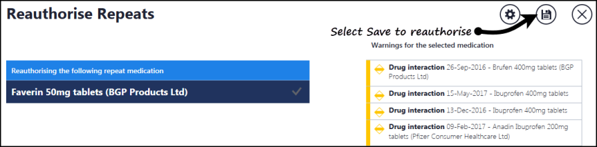 - To authorise the medication select Reauthorise