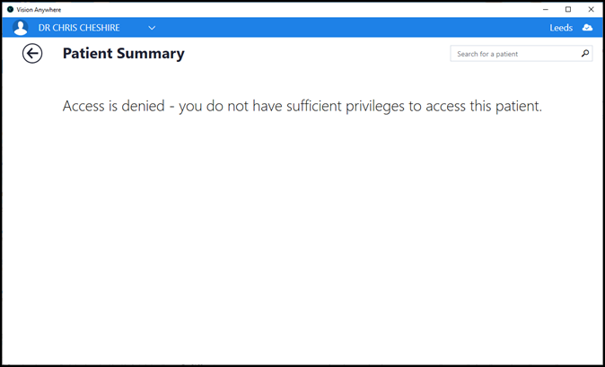 Some patients are marked as Sensitive at their practice, this restricts access to the patient’s record to specified staff only.