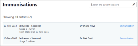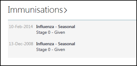 Select the Immunisation header to display the full vaccination history.