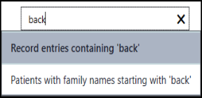 - From the Patient Record, enter the term you want to find in the Search Box.