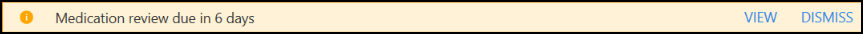 - Medication Review Due Alert - If a medication review is due or overdue, an alert banner displays. If the medication review is: