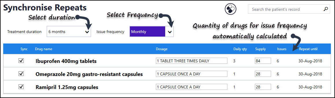 Easily synchronise all your patient's drugs to the same issue and review frequency to simplify medication reviews.