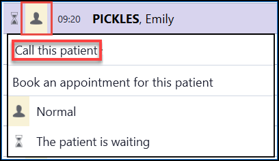 1. From the Appointments list, select the status button for the patient you are about to consult with.