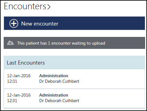 On closing the encounter a warning displays to indicate that the encounter cannot be uploaded. See - Encounter Preferences.