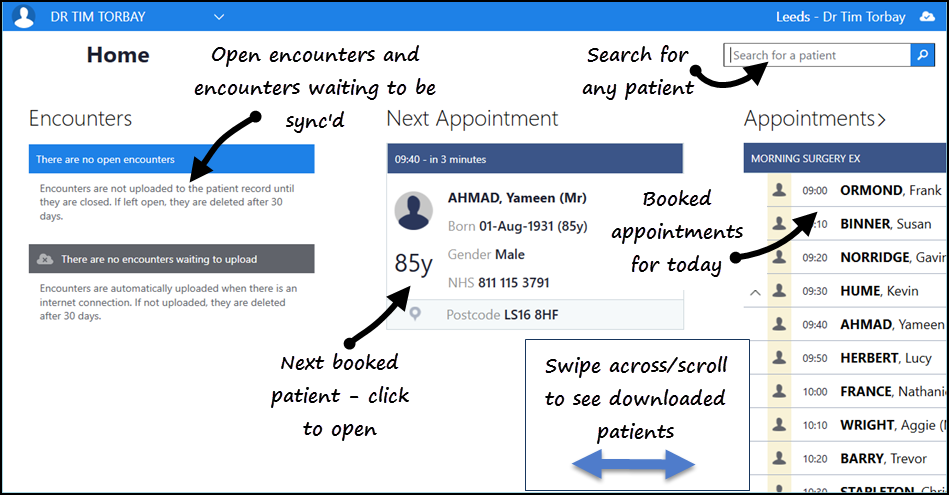 - Patients currently stored on your device for offline access.