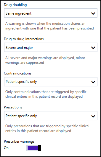 - Patient specific only (default) - Only shows warnings that are triggered by specific clinical entries in the patient record.