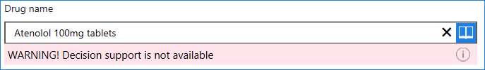 You must have an internet connection for prescriber warnings to display. If you do not have an internet connection a warning displays "Decision support is not available"