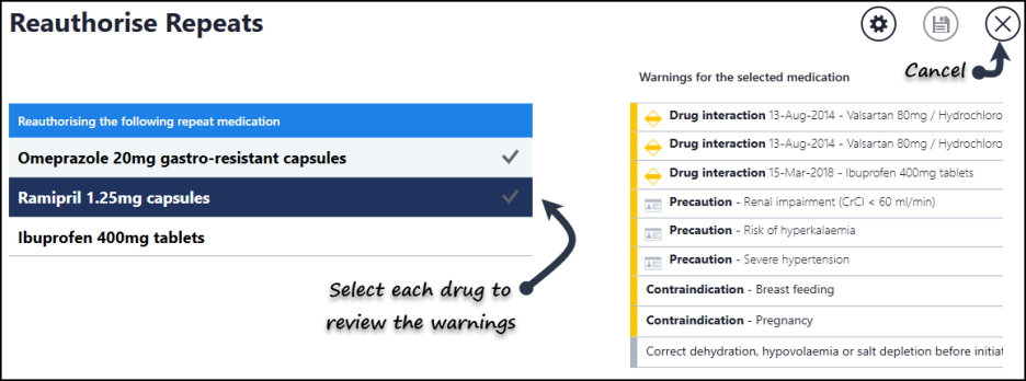 - Select Reauthorise and a list of valid drugs for reauthorisation displays.