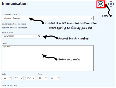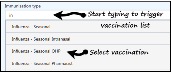 For example, enter 'inf vac' to trigger Influenza vaccinations.
